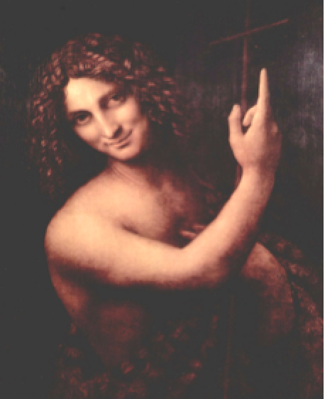 This, would you believe, is a painting by Leonardo of John the Baptist. If you were not told, there is no way you would think it was John with that weird, knowing smile. Do you believe what the National Gallery says about the finger?