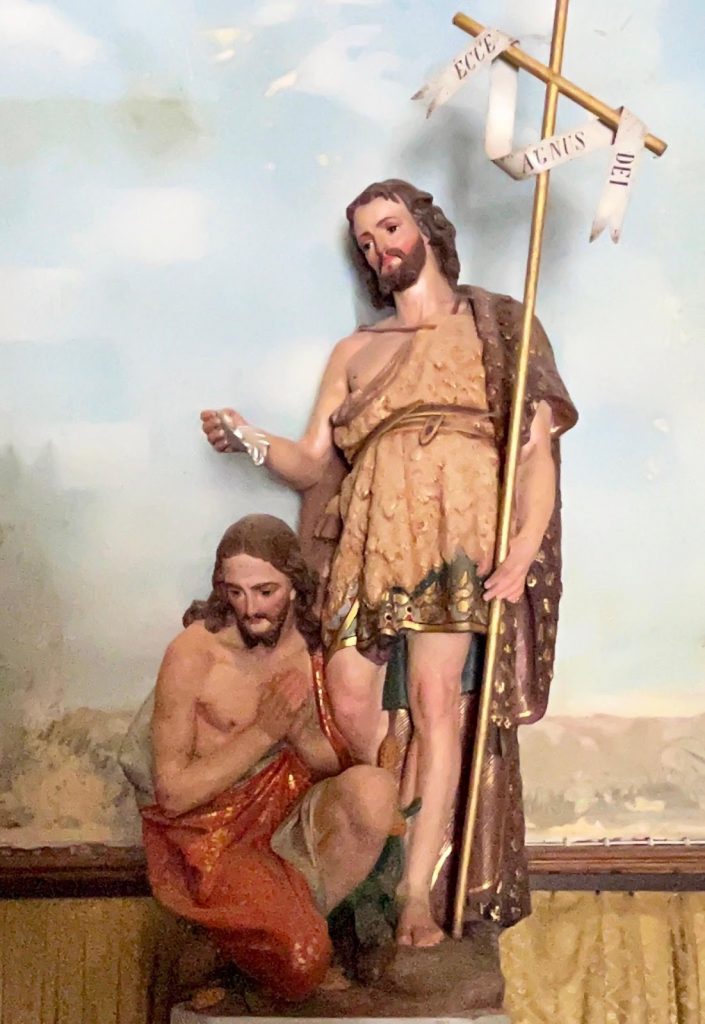 Anyway back to our finger, if you still have doubts, here are images of John the Baptist from the two heretical French Churches. First from The Magdalene church at Rennes-le-Chateau where Jesus is shown very deferential to the Baptist.