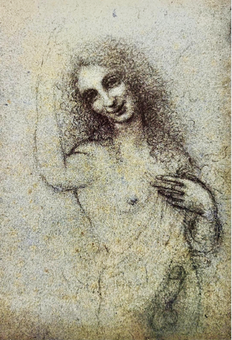 I once posted this comment about the rock in the hole on Facebook, and a woman complained that Leonardo would never paint such a crude idea. Of course she did not know about his sketch called ‘The Incarnate Angel’, a humorous take on his Baptist painting, which was thought to be pinned up in his studio.