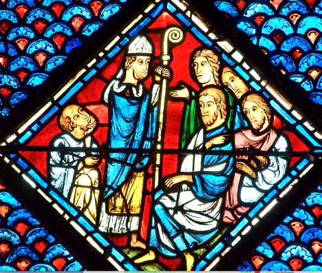 And even more surprising, in the Paris church of Saint Severin, there is another Magdalene window that has our man in his bishop’s costume, with the Magdalene in pride of place at the top.