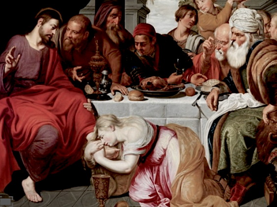 ‘She stood behind him at his feet, weeping, and began to bathe his feet with her tears and to dry them with her hair. Then she continued kissing his feet and anointing them with the ointment.’ (Luke 7:38)