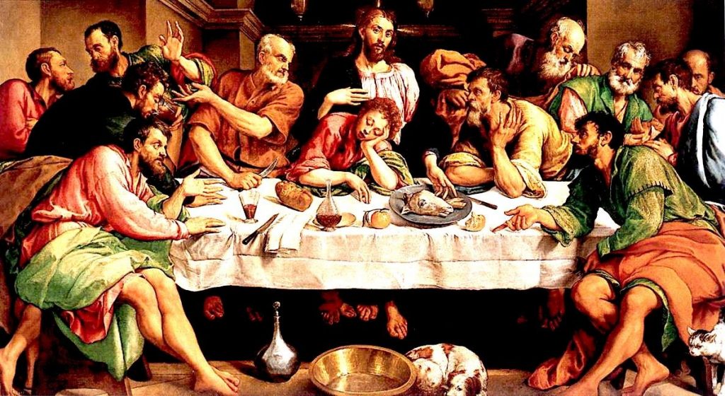 I have lots of fun looking at paintings trying to depict this odd situation. It is so difficult to place the beloved disciple that does not look awkward, leaning on Jesus’ bosom.